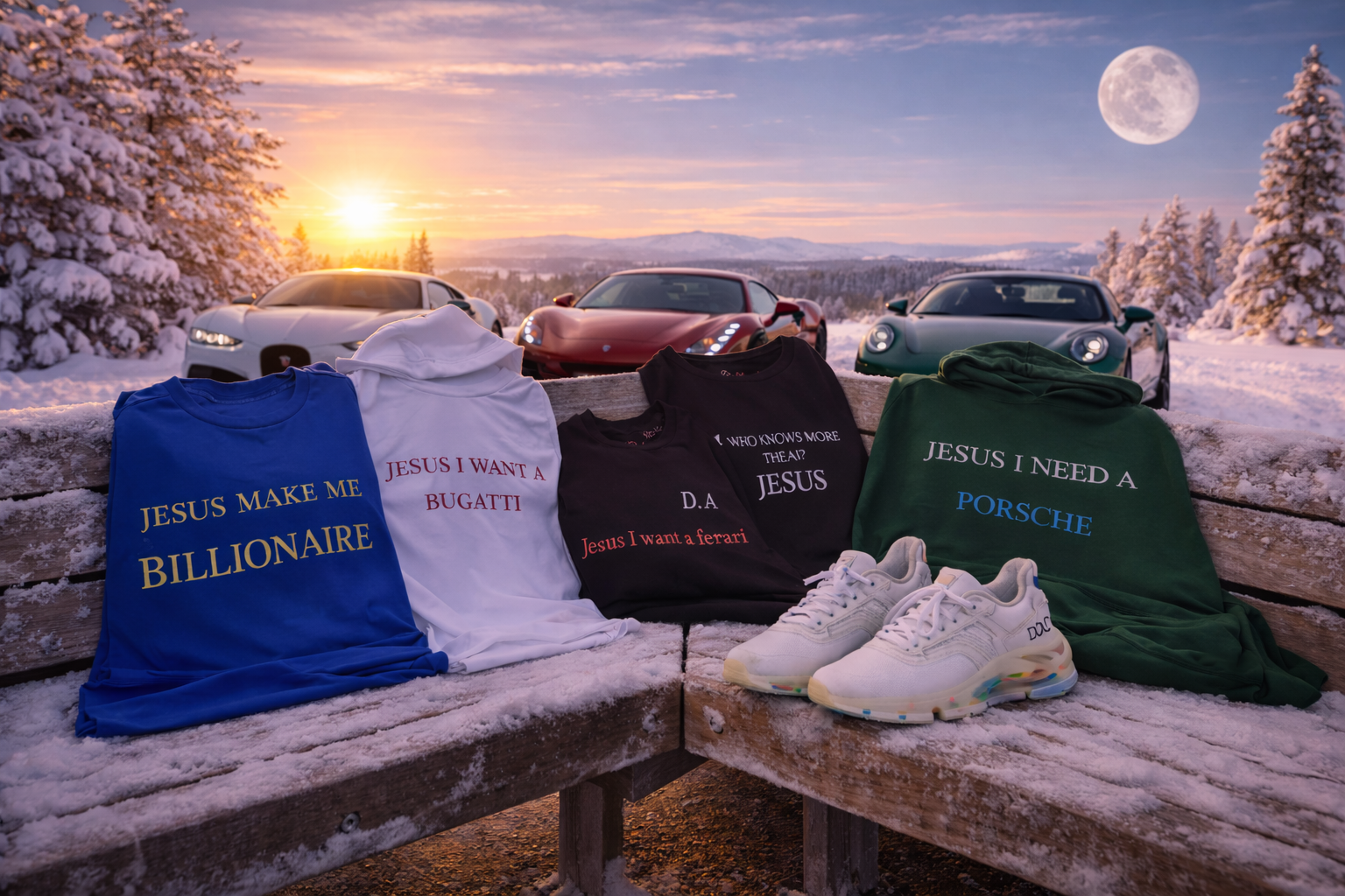 T‑Shirt — "Jesus I Want a Ferrari" Minimal Graphic Tee -